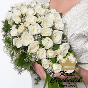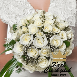 Gelin El Çiçeği Beyaz Gül Dolusu