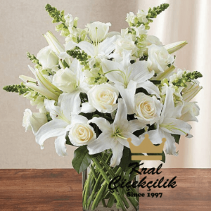 Cam Vazo Aranjmanı Lilyum ve Güller