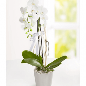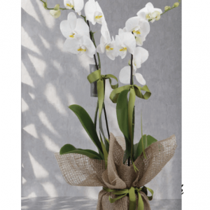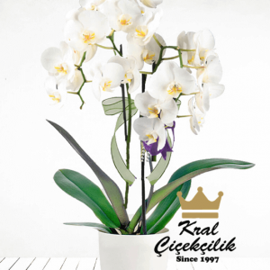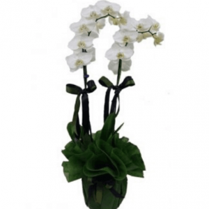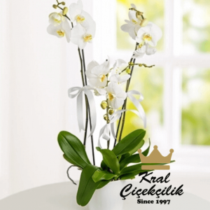 Çift Dallı Beyaz İthal Orkide Çiçek Aranjmanlı