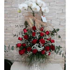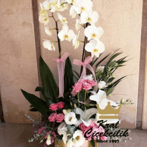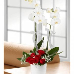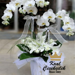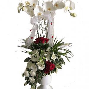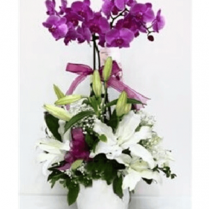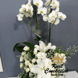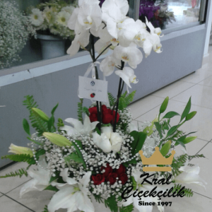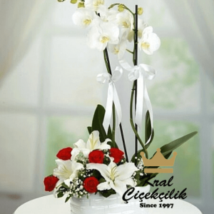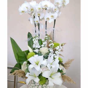 Orkide ve Beyaz Gül Lilyum Aranjmanlı