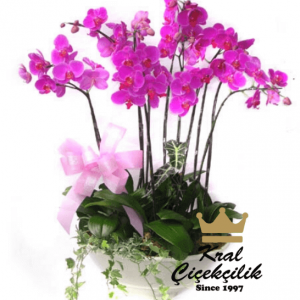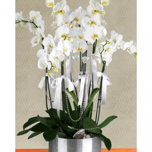 4 Dallı Beyaz Orkide ve Çiçek Aranjmanlı
