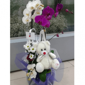 Mor ve Beyaz Orkide Peluş Ayıcıklı