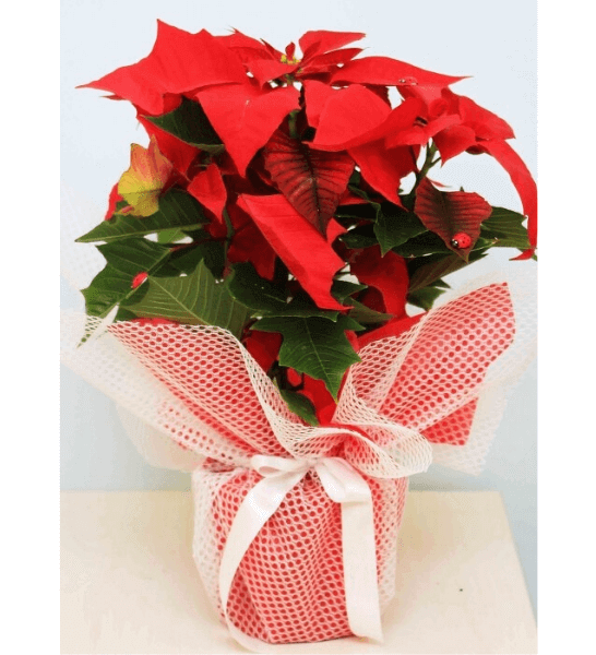 Plastik Saksı da 30-35cm yükseklik Atatürk Çiçeği – Puansetya hediye olarak gönderilebilecek kırmızı renkli salon bitkisi.