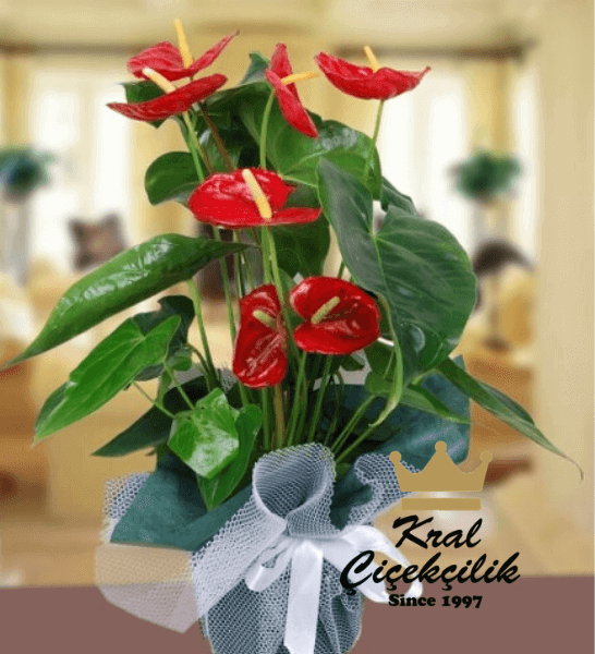 Kimse kırmızının ateşine karşı koyamaz. Antoryumun kırmızısı ile yeşilin en güzel tonlarını bir araya getiren bu salon bitkisiyle