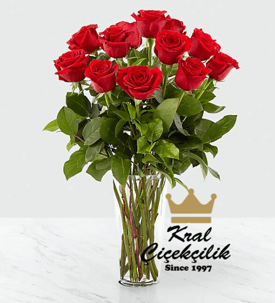 Silindir Vazo da 12 Adet Kırmızı Güller