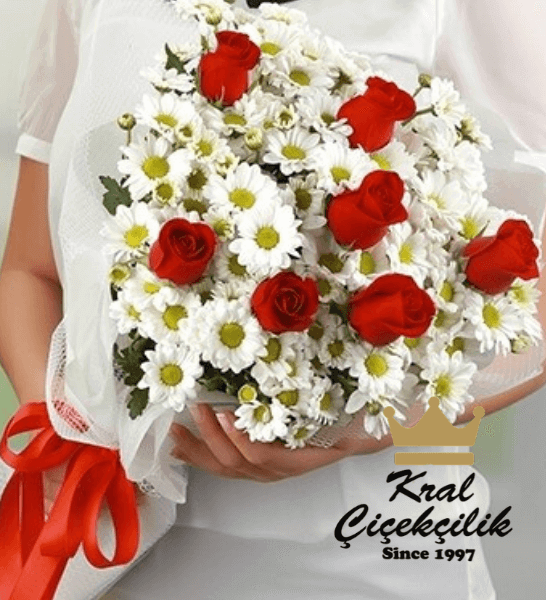 Papatya ve kırmızı gül sevdiğinize gönderebileceğiniz muhteşem buket